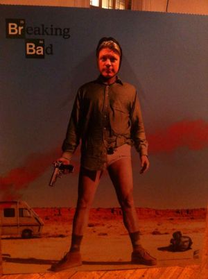 It was in a small gallery on the Charing Cross Road and when we arrived there were quite a lot of cool looking media types milling around, drinking champagne, largely not looking at the pictures. There was nobody I knew there and no one off the telly, which confused me further. Why had they invited me? Did someone have a seriously out of date celebrity Yellow Pages (from the week in 1995 when it looked like our show might be a hit) or was this some kind of situationalist prank (let's just invite the worst celebrity we can think of) or had all the proper famous people just declined? Surely not. They had a chance to be in the same room a Walter White. A man in a suit was chatting to a tall woman with a trendy haircut - "Do you like Breaking Bad?" she asked.