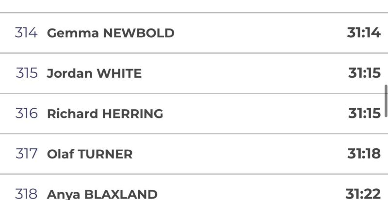 I barely checked my watch, kept up a reasonably pace and finished in 31.15, which is on the slow side for me, but still my 2026 PB, so I win.
