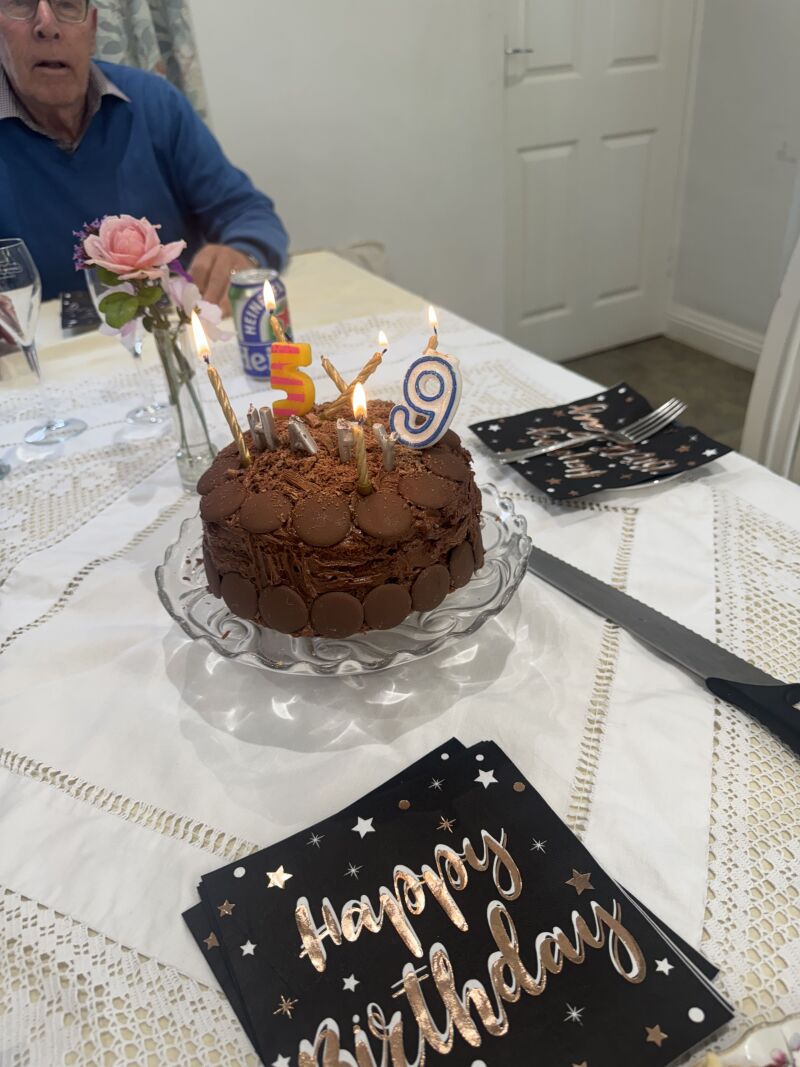 Mum had made Catie a cake, but couldn't find a candle with four on it, but she did have a 9. So she made it say 5 x 9 (the x crudely made by two candles fashioned into a parody of the cross that St Andrew died on). It looked like the cake was proclaiming that Catie was 59. Luckily she quickly spotted the back reference to breakfast and was polite enough to appear amused.