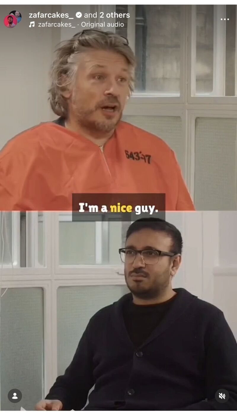 People are taking an interest in me again, though to be fair, mostly because they think I am actually a serial killer. But it all counts. Bilal has literally just texted me to say that his reel on Instagram has had one million views! And just because that's mainly from people who haven't spotted that it's a joke that doesn’t mean it doesnt count!