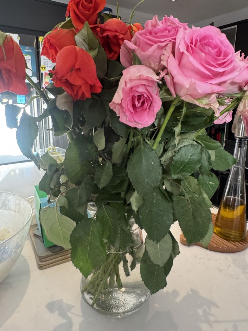 He also bought me a bunch of bananas instead of some chocolate as he wants to help me stay fit. The bananas made the roses look fresh.