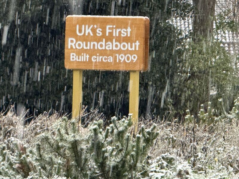 The surprising thing about the UK's first roundabout is that it's in quite a quiet and leafy part of Letchworth, not the kind of place that you'd imagine would need traffic to be organised. But hats off to the people of roughly 1909 for having the foresight to put this in. I wonder if they realised what they started.