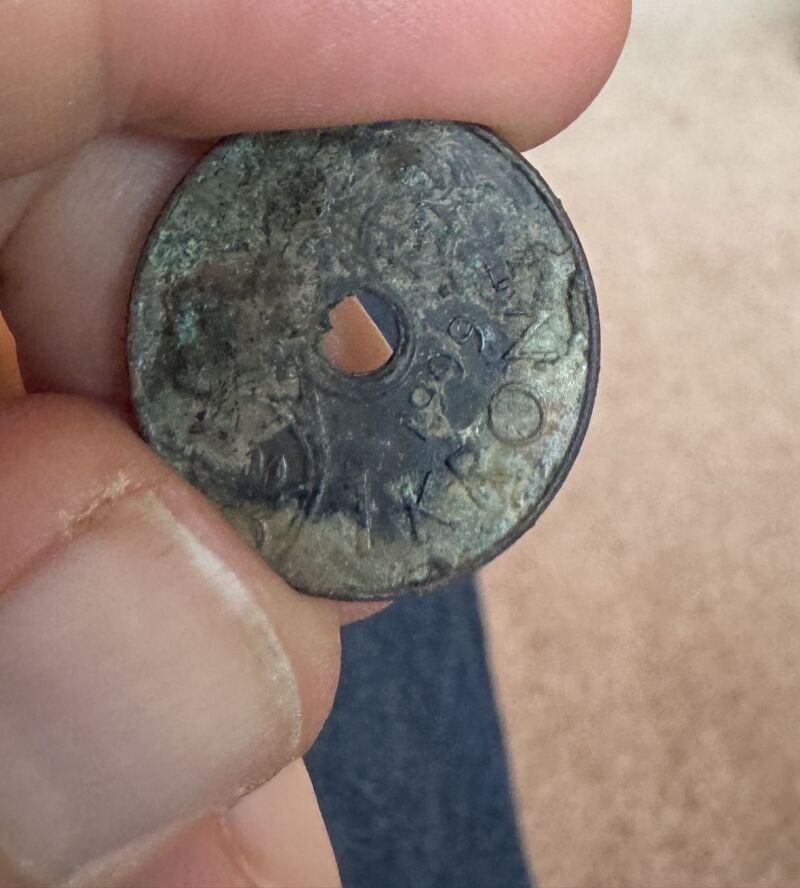 Ernie cleaned the coin up further and he was right, it's from 1999. So it got into my parents' garden some time in the last 26 years. I wondered if it might have somehow come in in a bag of fertiliser, but mum doesn't think they've ever put soil from anywhere else on there. What a mystery this is.