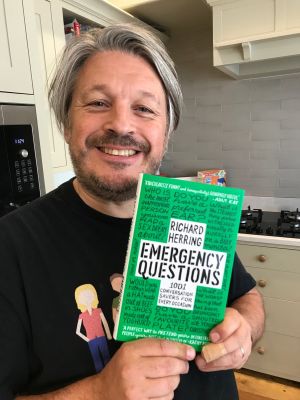 I got the first copy of the new Emergency Questions book in the post today. It's always very exciting to see a new book and this was no exception. It looks lovely - the cover is a brighter green than I expected and is much better for it. I wrote a newsletter about it and tweeted a bit and the book leaped from 104,000 in the chart to the low 2000s. If you are buying the book early then it is apparently helpful to its chances to buy it from Amazon or Waterstones in order to build its rep and get them to push it more. But it's also available from gofasterstripe, where the money will go to a nice tax paying man who will use it to make more comedy shows.