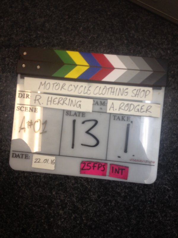 We got the whole sketch filmed and all the other shots required done in a little over two hours. I had quite a lot of difficulty remembering my lines and the all important “catchphraseâ€, but I think we just about got it. Occasionally a customer would come through to be greeted with me pretending to want to but clothing for my motorcycling. And what if they were doing that too? They would have thought we were spirits conjured up to mock their own duplicity.