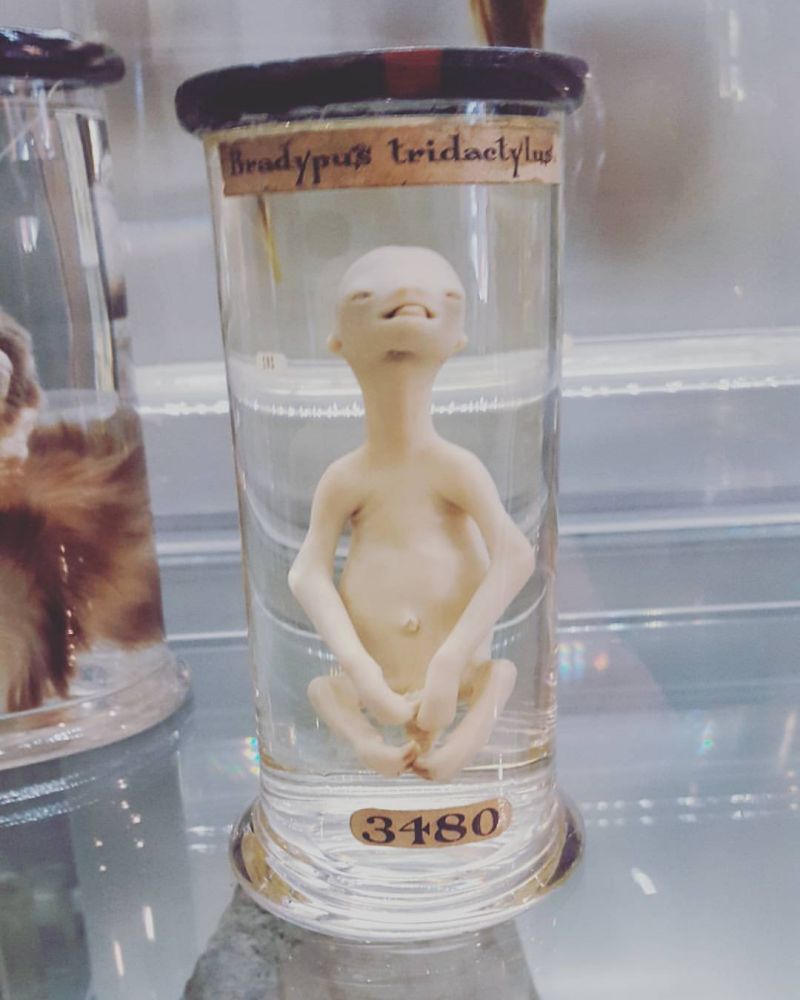 It is also, I realised later, the museum that is displaying the real Winnie the Pooh's skull (that I mocked in a previous Warming Up) and now I've been there, my fears of it scaring children are unfounded. Any child who made it that far into the museum would already have been traumatised beyond all help. Right at the front (as my wife pointed out) there is a jarred ET foetus. I mean they say that it's a sloth, but they're not fooling anyone. Whatever it is it is surely the happiest creature ever to be preserved in formaldehyde there has ever been.