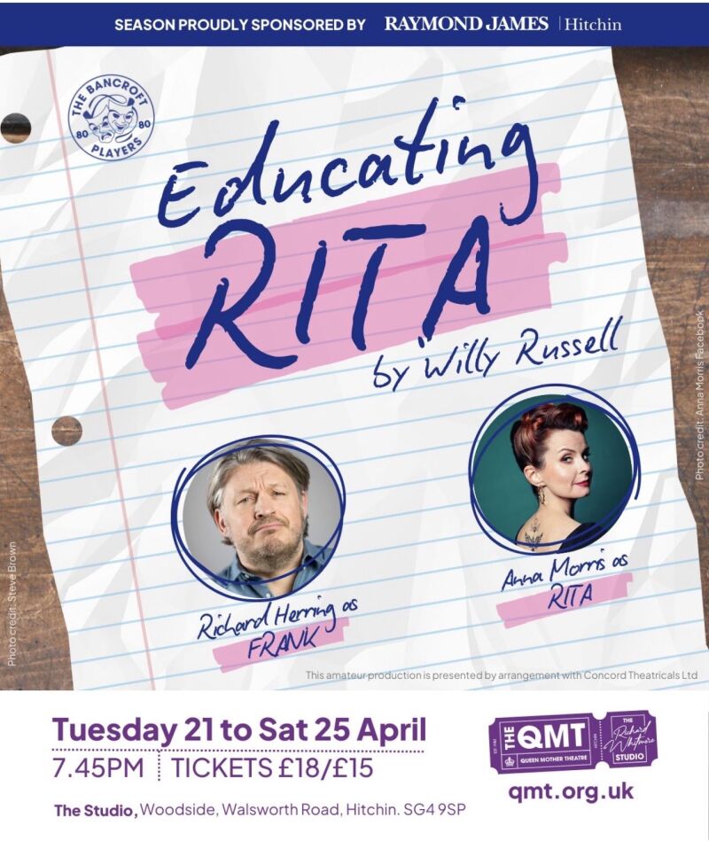 And exciting news (for me). I am going to be playing Frank In Educating Rita at the Queen Mother Theatre in Hitchin 18th-24th April. It's selling very fast (and it's in a small studio space) so BOOK NOW if you want to come. We're looking at adding at least one more performance.